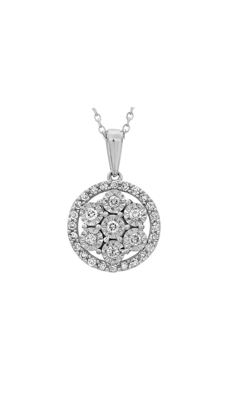 שרשרת ותליון יהלומים P-RP239 בצורה עגולה סביב ובאמצע צורת פרח עדין עם שיבוץ קטנים במרכז ומסביב לתליון . לפנק את האישה בשביל כל אירוע מיוחד אשר יראה לה את אהבתך הנצחית. שרשרת יהלומים זהב לבן/צהוב לבחירתך, 14 קראט משובצת אבני יהלומים קטנים במרכז ומסביב שגדולם 31=0.28 קראט , זהב לבן 14 קראט.