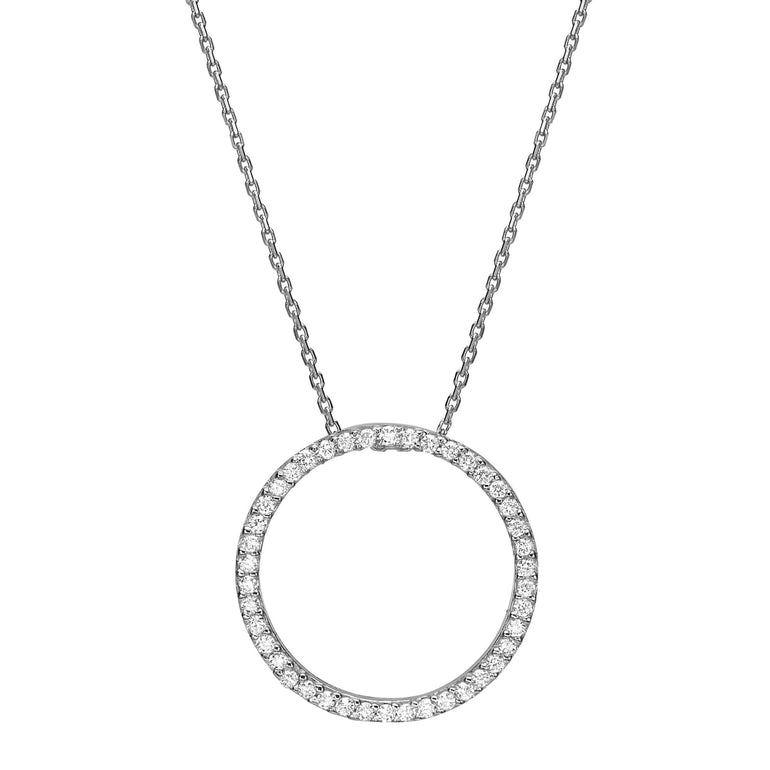 שרשרת יהלומים, בצורת עיגול מעגל החיים. לפנק את האישה בשביל כל אירוע מיוחד אשר יראה לה את אהבתך הנצחית. שרשרת יהלומים זהב לבן לבחירתך, 14 קראט משובצת 42 יהלומים סה"כ 0.25קראט