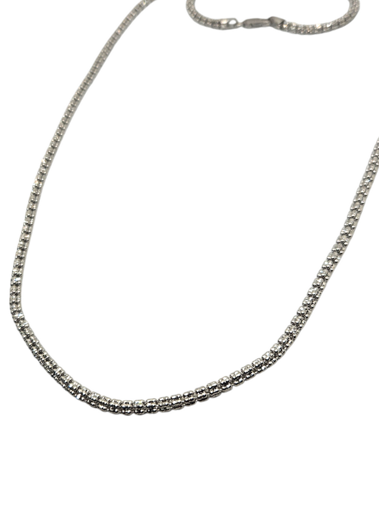 שרשרת אייס | כדורים קטנים מחוברים חרוטים חיתוכי לייזר | זהב לבן 14 קראט | דגם אייל