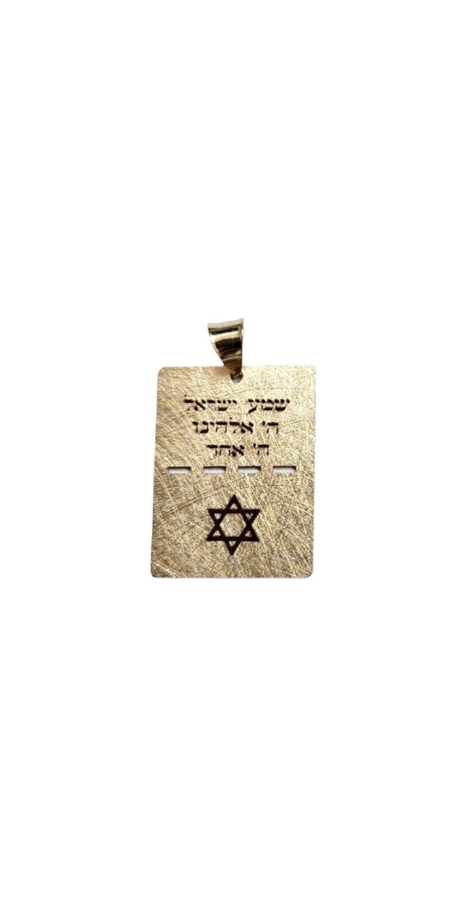תליון פלטה דיסקית | חרוטה ב"שמע ישראל ה' אלוהינו ה' אחד" |מט זהב צהוב 14 קראט | דגם שיראל