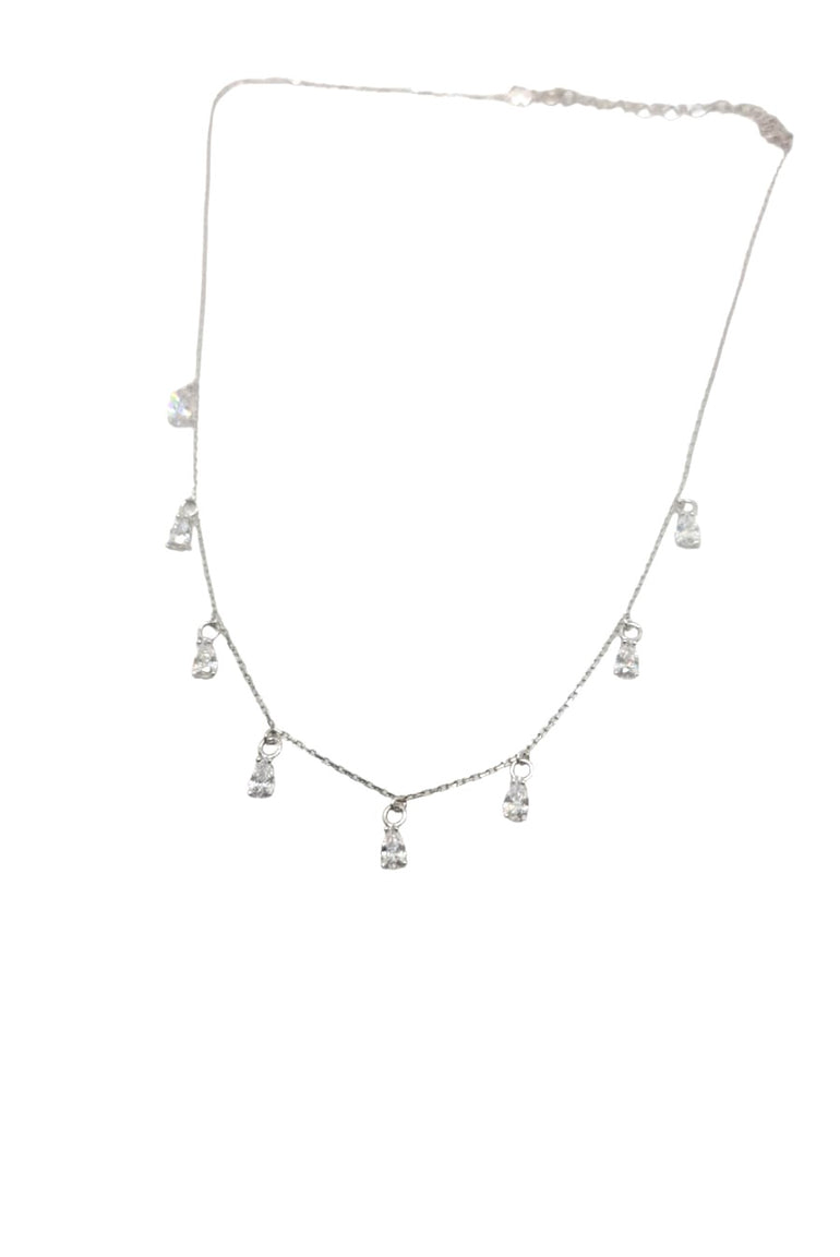 שרשרת תליונים | משולב תליוני טיפה | שיבוץ זרקונים | זהב לבן 14 קראט | דגם אופירה