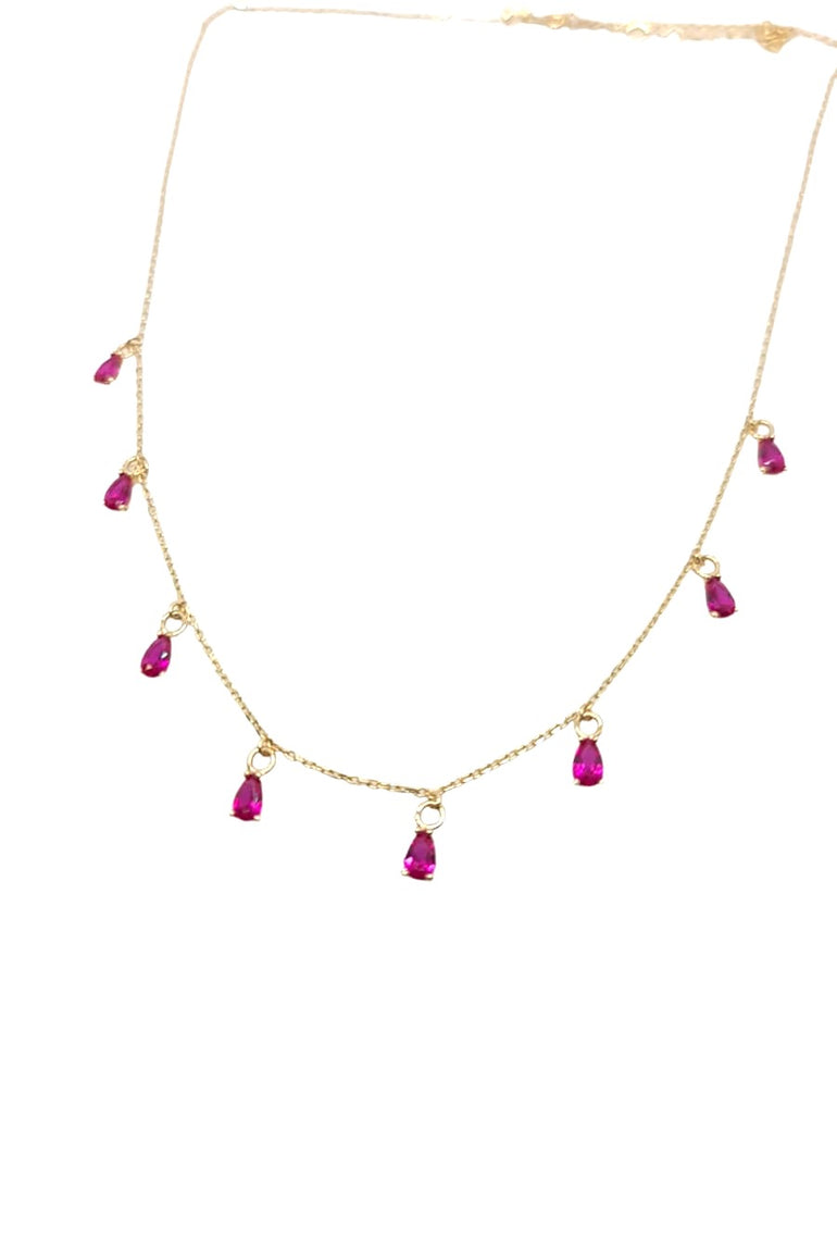 שרשרת תליונים טיפות | משובץ אבני חן בצבע אדום/ורוד | זהב צהוב 14 קראט | דגם אורין