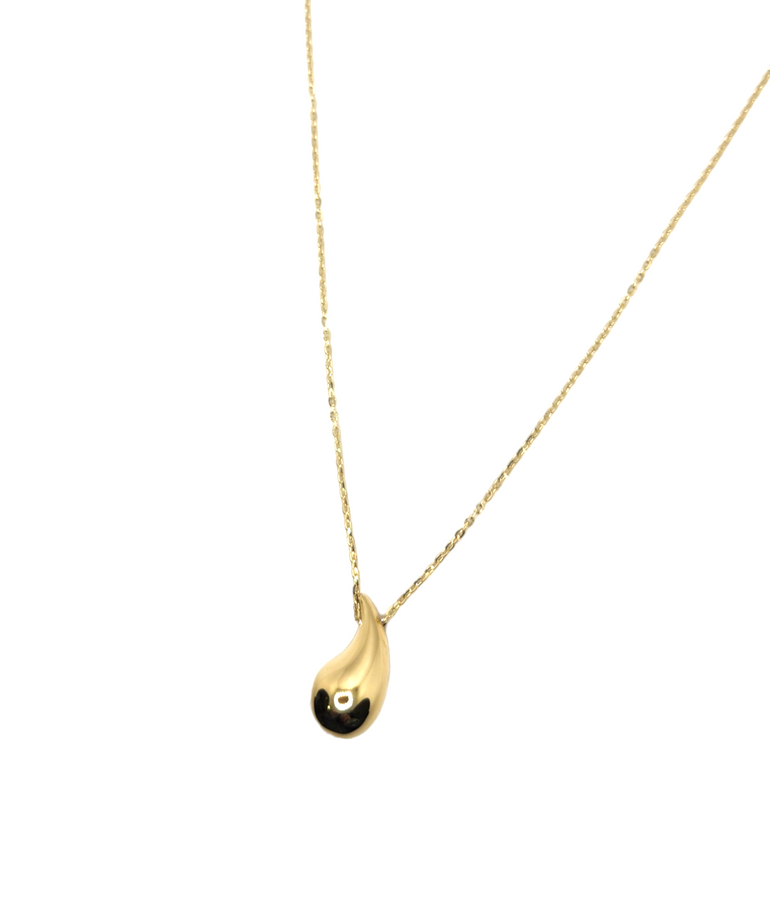 שרשרת עדינה עם תליון בצורת טיפה נפוח חלק ומבריק קלאסי מזהב צהוב 14 קראט . השרשרת מעוצבת בצורה קלאסית , בנוסף נותן גם מראה מרשים על צווארך