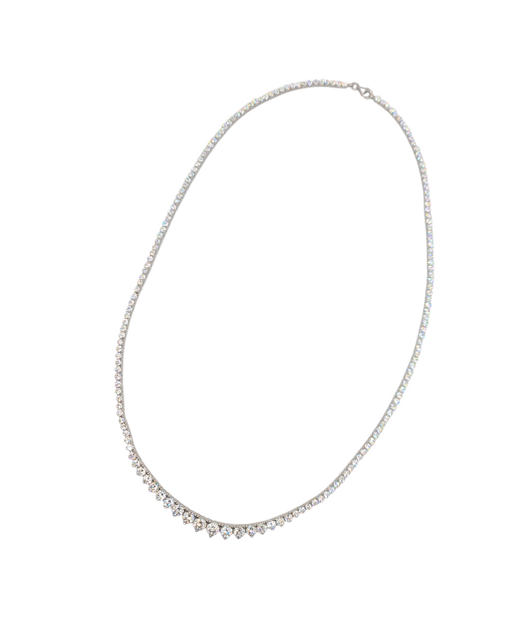 שרשרת טניס שיבוץ מלא לאורך כל השרשרת מעוצבת בצורת שיבוץ של שלוש שיניים שנותן מראה של טיפות קטנות לאבנים , השרשרת משובצת באבני זרקון ניתן לענוד אותה כמו צ'וקר קלאסית ועדינה . בנוסף נותן גם מראה עדין על צווארך