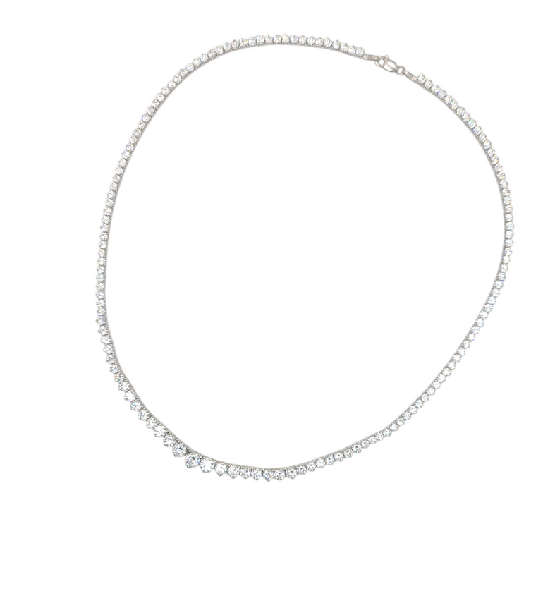 שרשרת טניס שיבוץ מלא לאורך כל השרשרת מעוצבת בצורת שיבוץ של שלוש שיניים שנותן מראה של טיפות קטנות לאבנים , השרשרת משובצת באבני זרקון ניתן לענוד אותה כמו צ'וקר קלאסית ועדינה . בנוסף נותן גם מראה עדין על צווארך