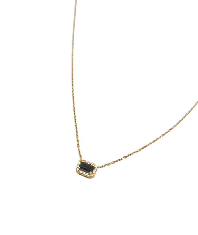 שרשרת מלבן | משובץ אבן שחורה מרכזית ומסביב אבני זרקון | זהב צהוב 14 קראט | דגם לין