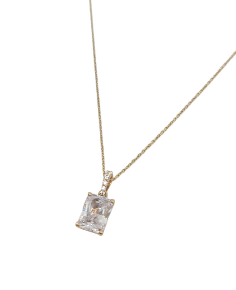 שרשרת עדינה ותליון מלבן | משובץ זרקונים לבנים | זהב צהוב 14 קראט | דגם ליטל