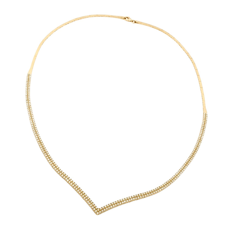 שרשרת טניס בצורת וי | משובצת אבני זרקון | זהב צהוב 14 קראט | דגם שיר