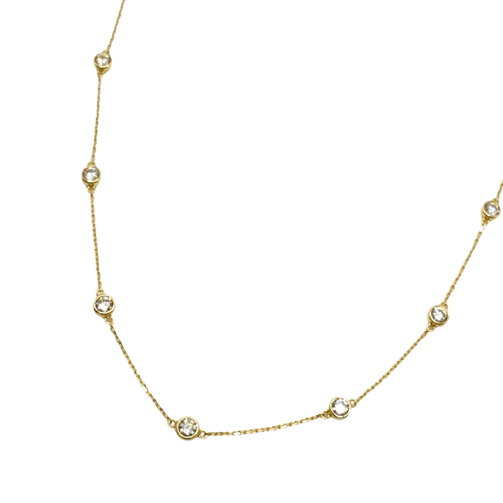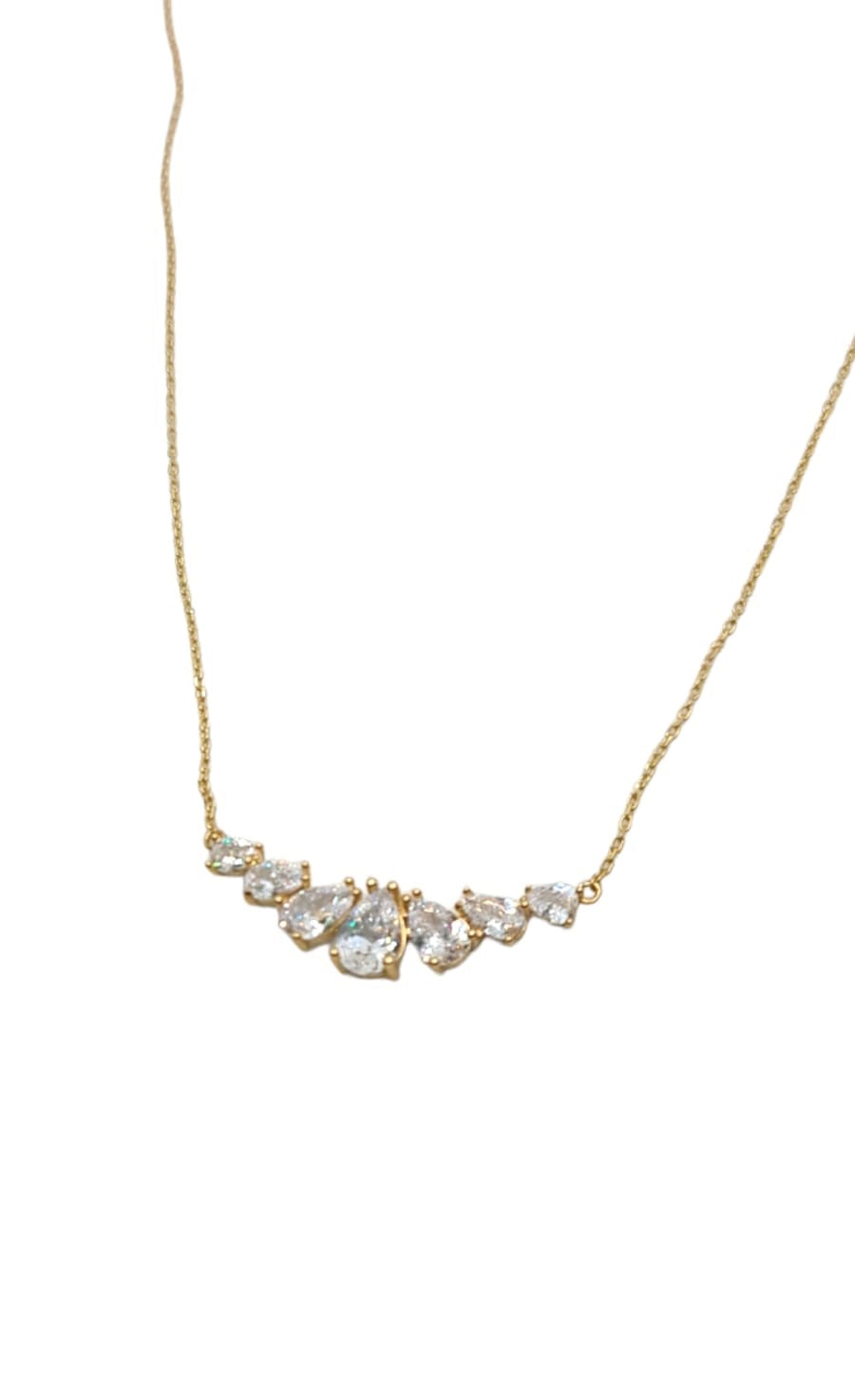שרשרת עדינה | משולבת שורת שיבוץ זרקונים | בצורת טיפות | זהב צהוב 14 קראט | דגם איימי
