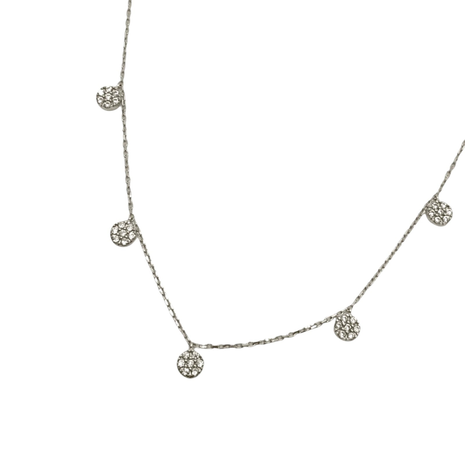 שרשרת צ'וקר | חמש תליונים משובצים אבני זרקון | זהב לבן 14 קראט | דגם מירן