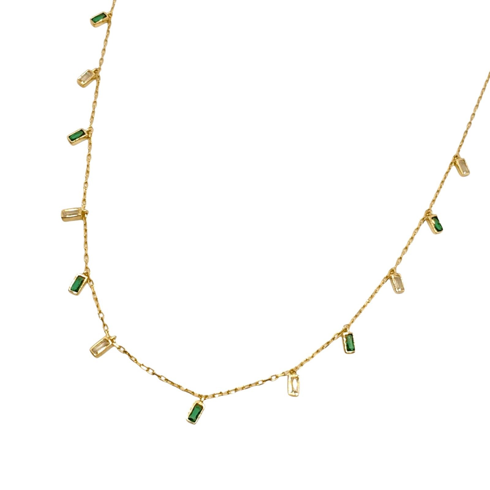 שרשרת צ'וקר | אבנים נופלות מלבניות ירוקות | זהב צהוב 14 קראט | דגם מריאן