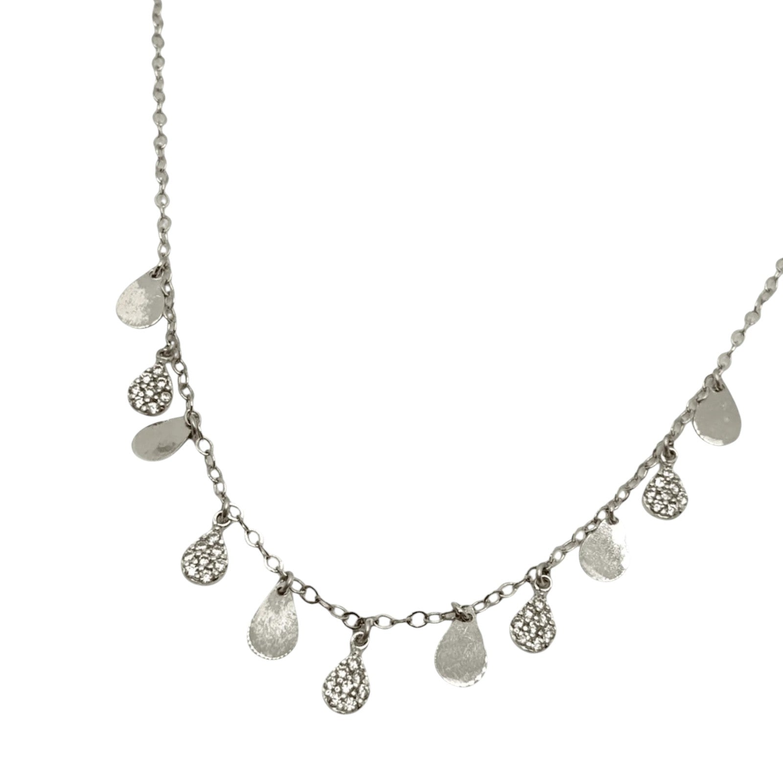 שרשרת צ'וקר | תליוני טיפות חלקות ומשבוצות | אבני זרקון | זהב לבן 14 קראט | דגם ליטל