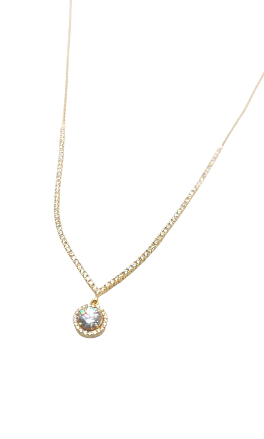 שרשרת חצי טניס | משולב תליון פיירו | משובץ אבני זרקון | זהב צהוב 14 קראט | דגם קורין