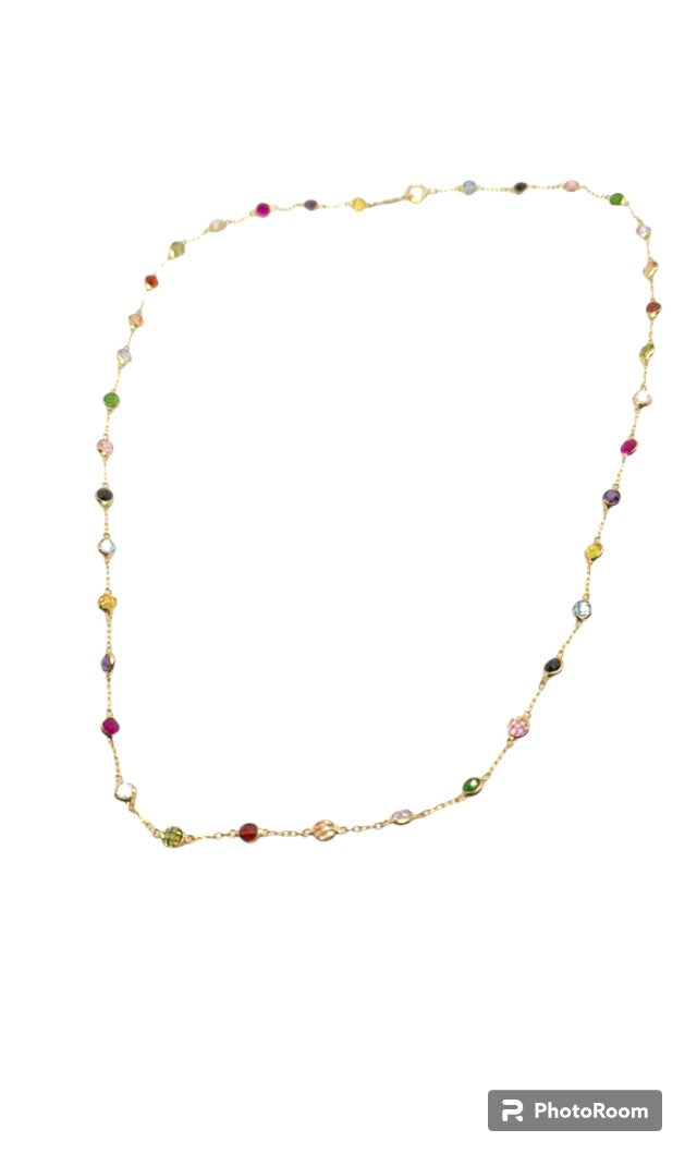 שרשרת צ'וקר | משובצת אבני חן צבעוניים | זהב צהוב14 קראט | דגם ענבל