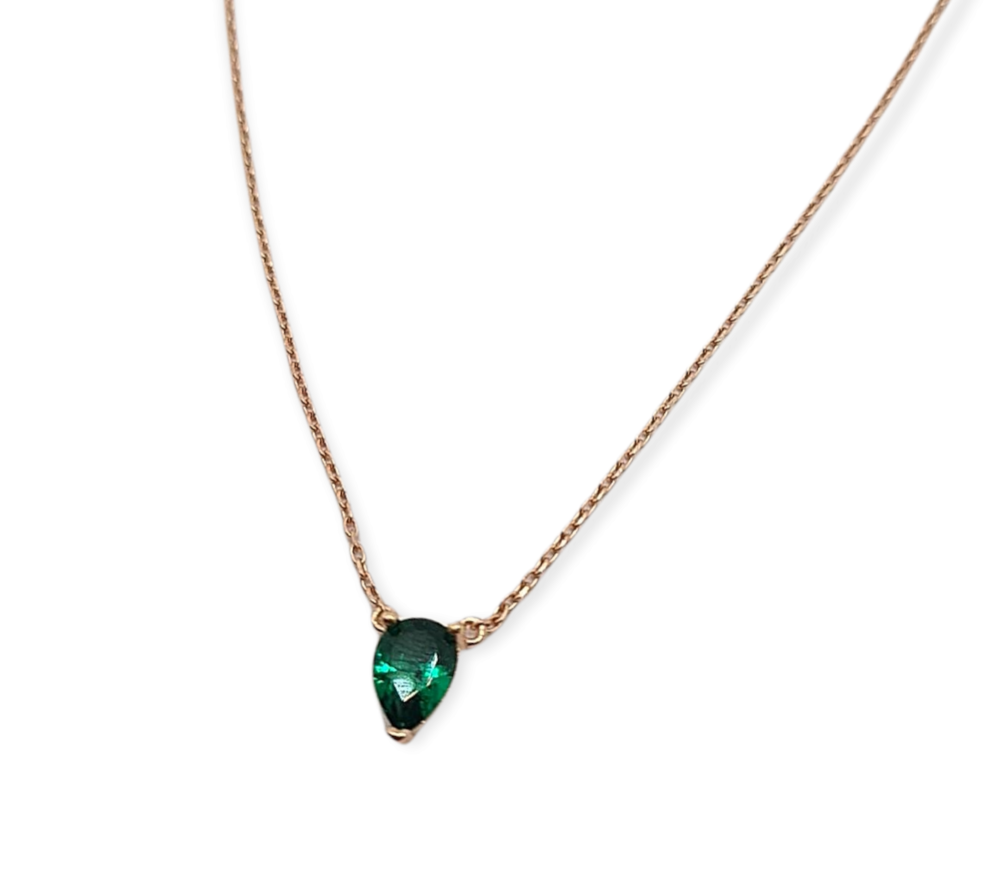 שרשרת עדינה מחוברת עם תליון | תליון טיפה הפוכה | משובץ אבן חן ירוקה | זהב צהוב 14 קראט | דגם טלי
