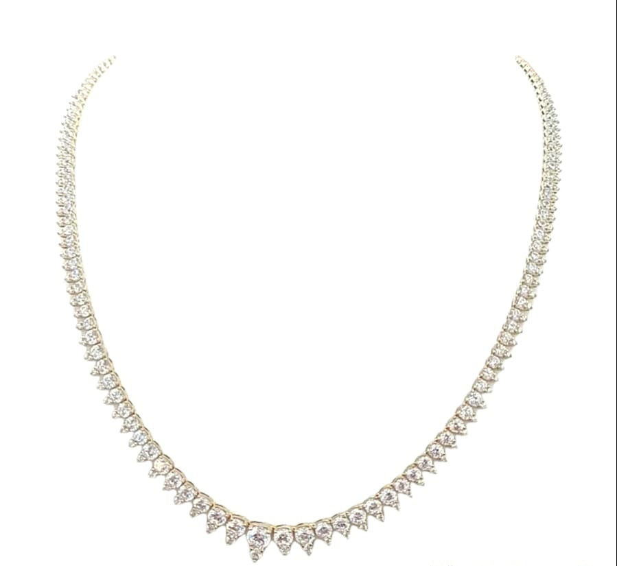 שרשרת טניס | צורת אבנים טיפות בגדלים שונים | אבני זרקון | זהב לבן 14 קראט | דגם טיילור