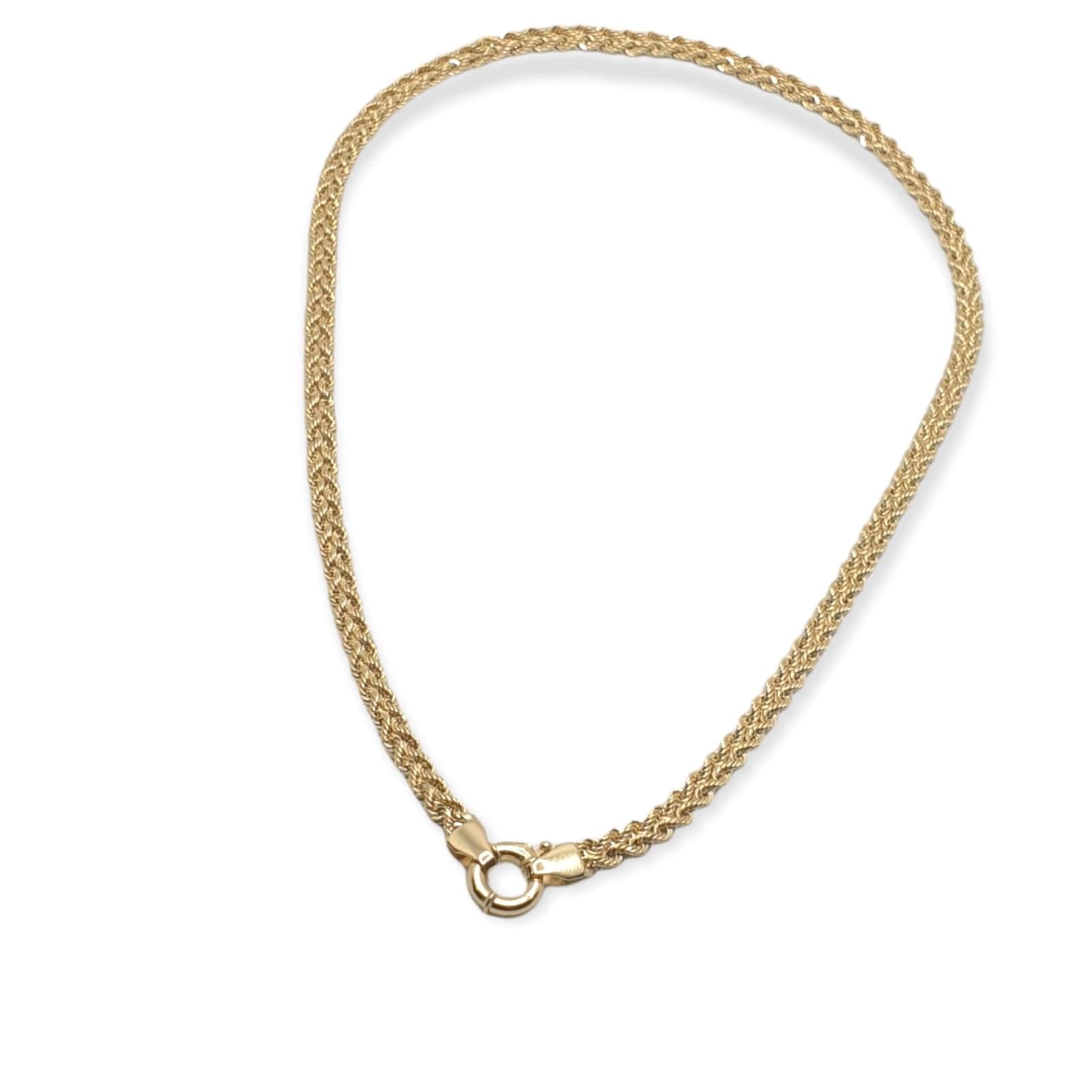שרשרת צורת סירגה | דמוי חבל | מבריקה מזהב צהוב 14 קראט | דגם קרן