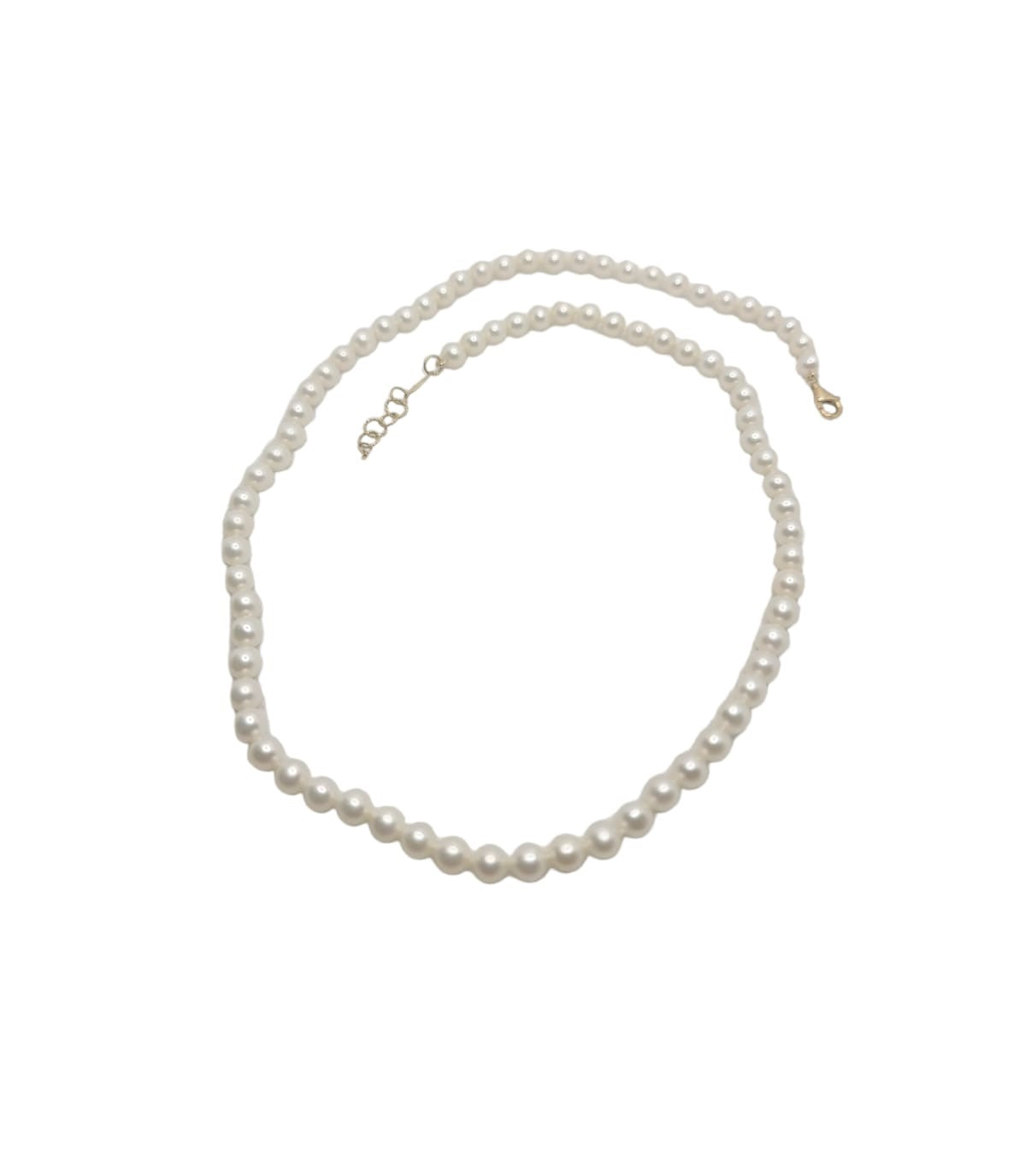 שרשרת מחרוזת פנינים | פנינים לבנים עגולים | סוגר זהב צהוב 14 קראט | דגם איוון