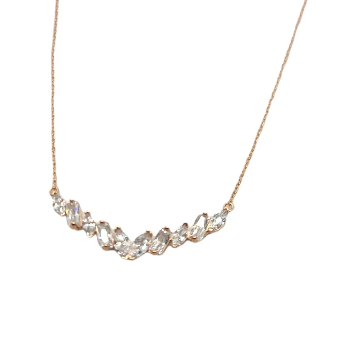 שרשרת טניס בצורת וי | משובצת אבני זרקון | זהב צהוב 14 קראט | דגם שיר