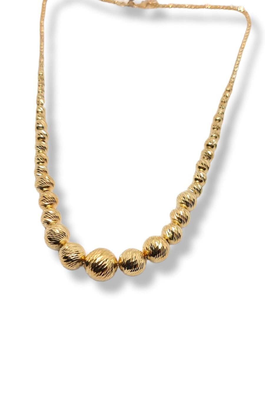 שרשרת כדורים עבה | משתני בגדלים מגדול לקטן | חרוט בחיתוכי לייזר | זהב צהוב 14 קראט | דגם אופק