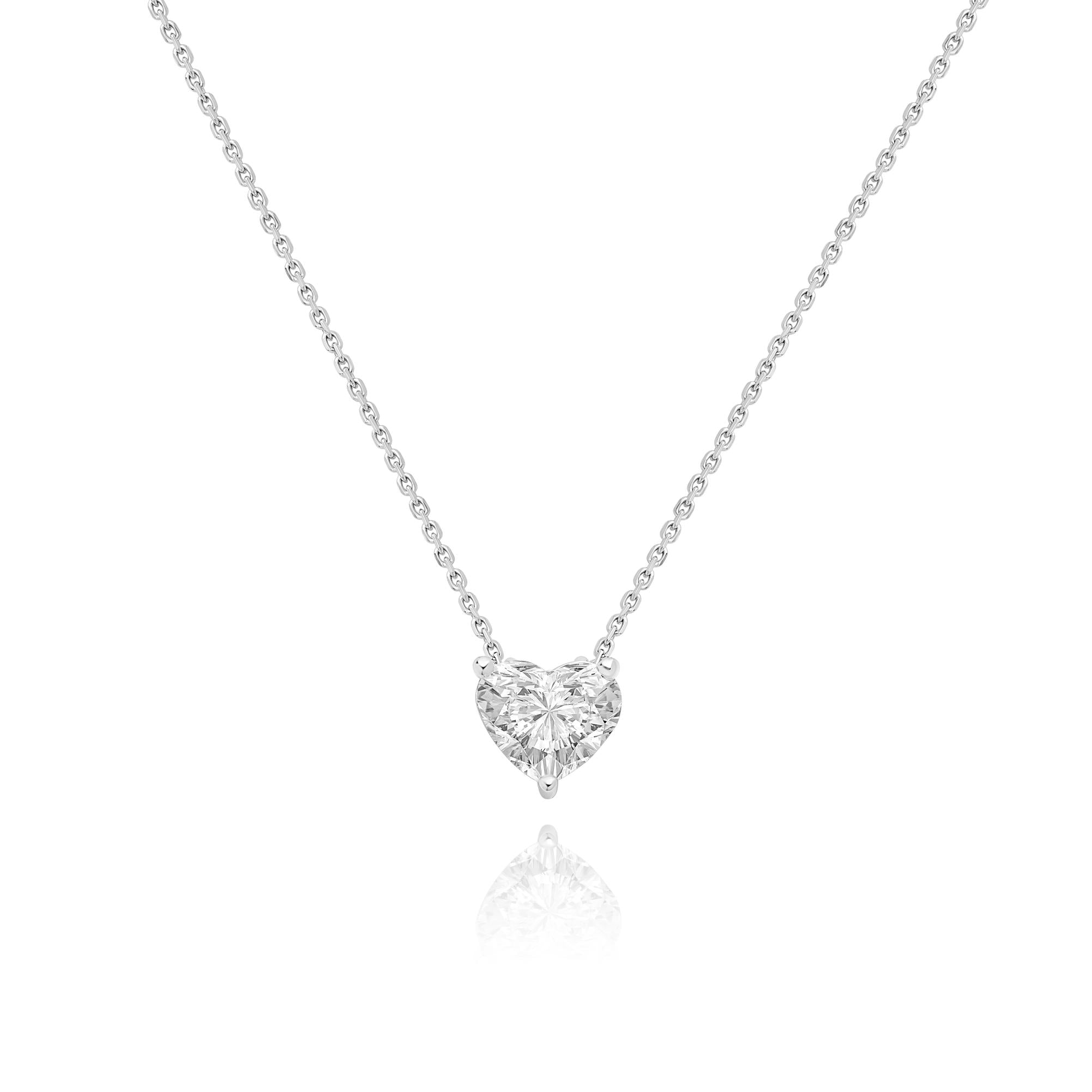 שרשרת תליון יהלום לב קלאסי | יהלומי מעבדה CVD | גודל 1.560 קראט | זהב לבן 14 קראט | דגם לירי