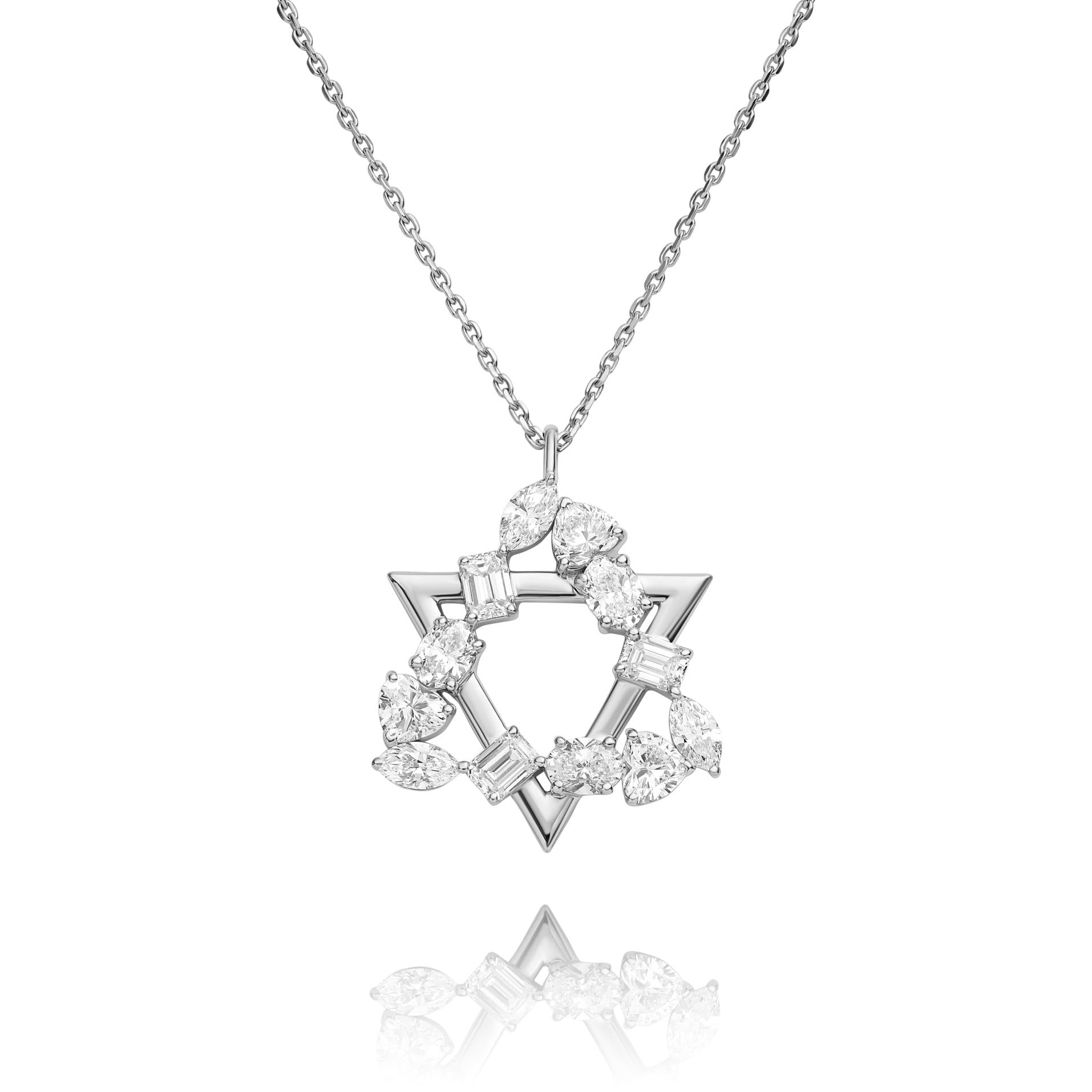 שרשרת תליון מגן דוד מעוצב | יהלומי מעבדה CVD | גודל 1.770 קראט | זהב לבן 14 קראט | דגם הדר
