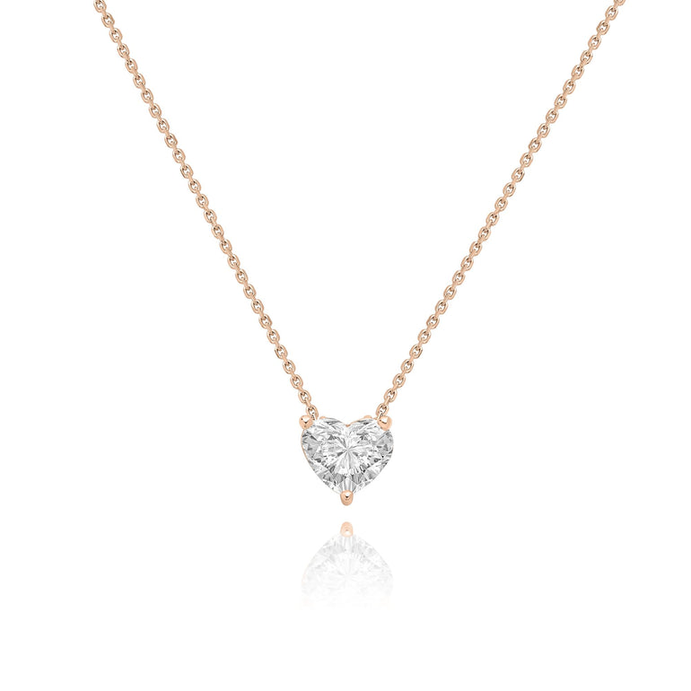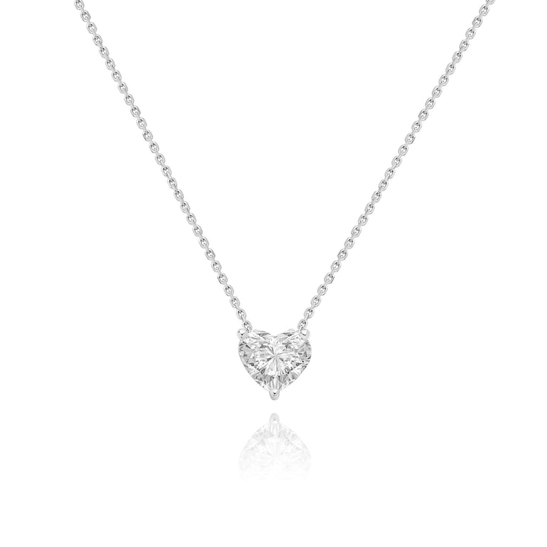 שרשרת תליון יהלום לב קלאסי | יהלומי מעבדה CVD | גודל 1.560 קראט | זהב לבן 14 קראט | דגם לירי