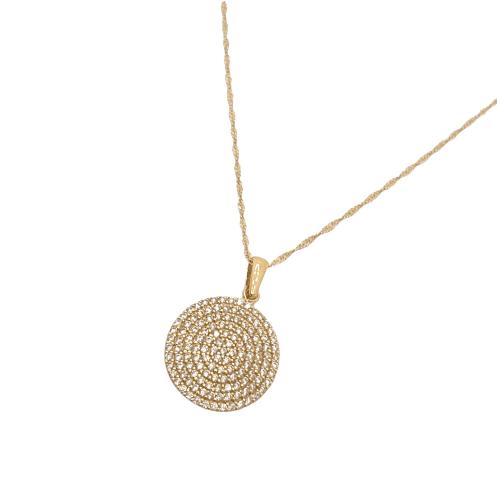 שרשרת ותליון עגול משובץ | תליון משובץ מלא אבני זרקון | זהב צהוב 14 קראט | דגם עינת