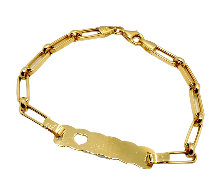 צמיד ילדים | חוליות ופלטה לחריטה | זהב צהוב 14 קראט | דגם גל