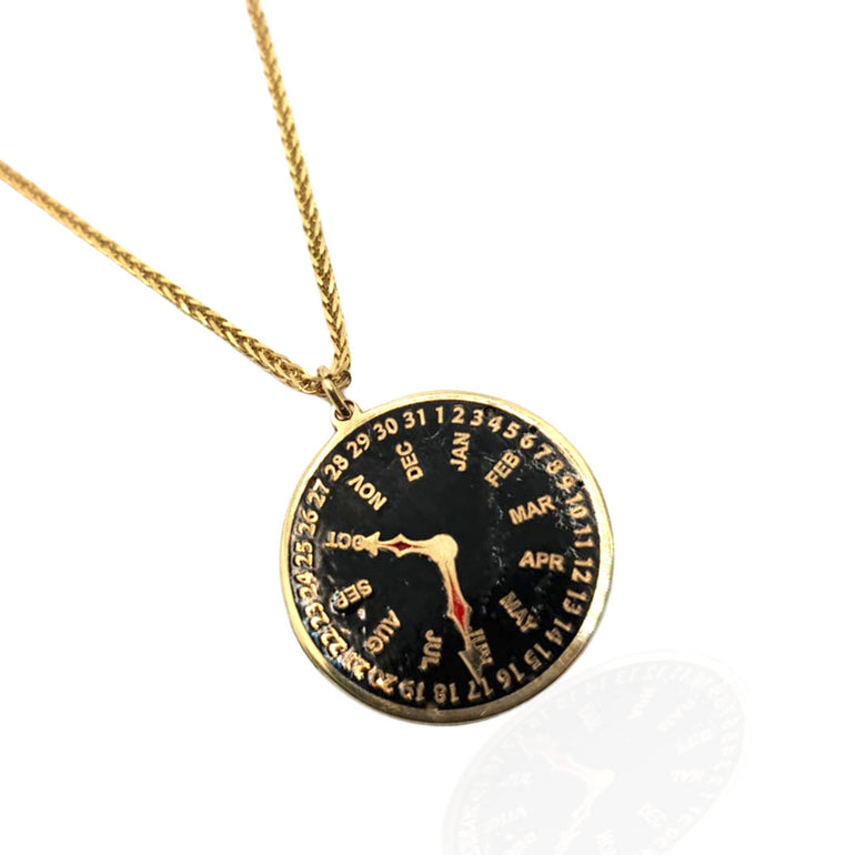 תליון יום הולדת | עגול על רקע שחור | זהב צהוב 14 קראט | דגם יום הולדת