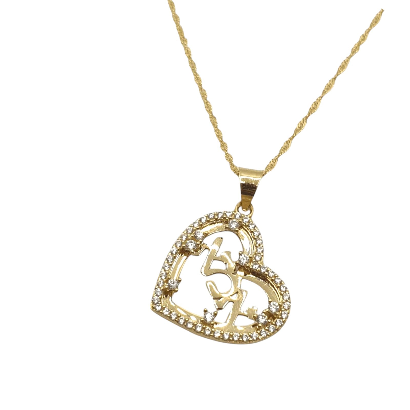 שרשרת ותליון לב | אמא באמצע וסביב שיבוץ זירקונים | זהב צהוב 14 קראט | דגם אימי