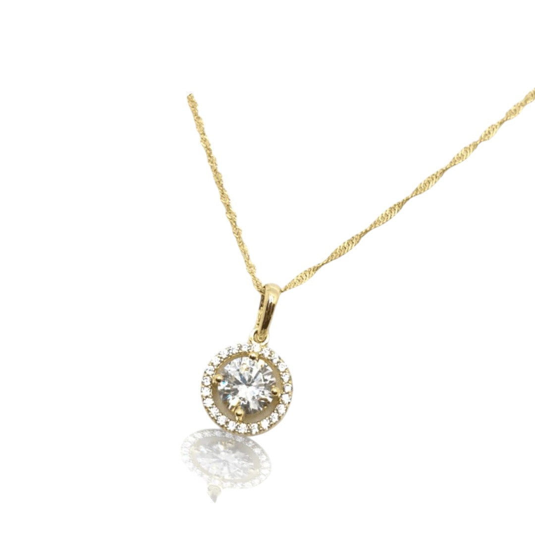 שרשרת ותליון פיירו | משובץ אבני זרקון | זהב צהוב 14 קראט | דגם קמיליה