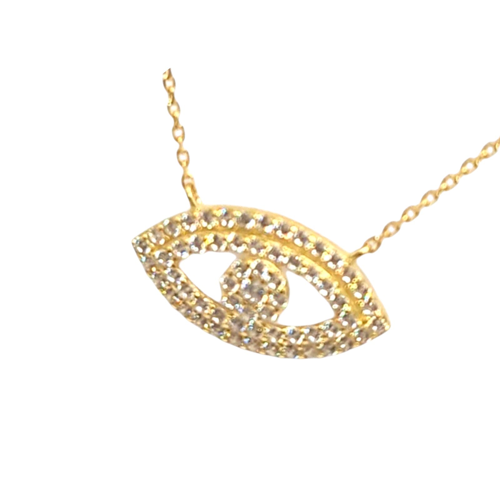 שרשרת עם תליון עין | משובצת אבני זירקון | זהב צהוב 14 קראט | דגם לימור