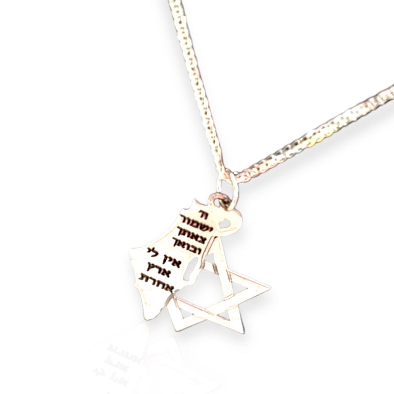 שרשרת משולבת תליון כפול: מפת ארץ ישראל ומגן דוד, עם חריטת ברכת הכהנים.