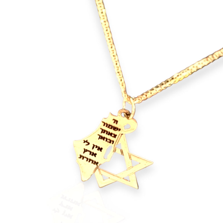שרשרת ותליון משולב ברכה | מגן דוד ומפת ישראל | זהב 14 קראט | דגם ישראל