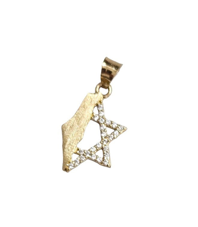 תליון מגן דוד | משולב מפה שניתנת לחריטה משולב שיבוץ זרקונים במגן דוד | זהב צהוב 14 קראט | דגם אדם