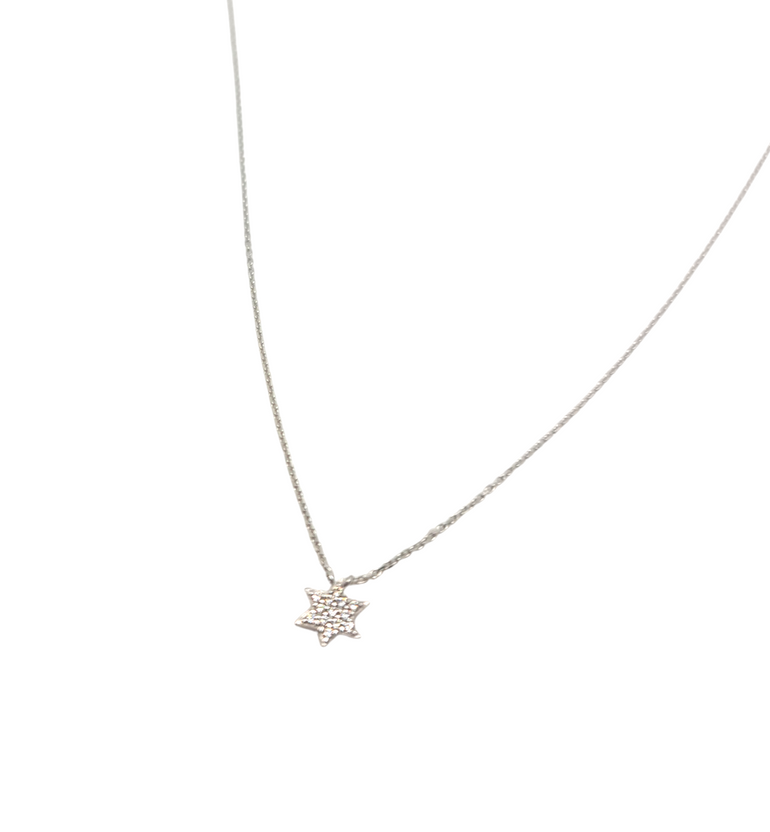 תליון מגן דוד משובץ אבני זרקון קטן עדין וקלאסי מזהב צהוב 14 קראט, השרשרת קלאסית ועדינה. השרשרת מעוצבת בצורה קלאסית , בנוסף נותן גם מראה עדין על צווארך
