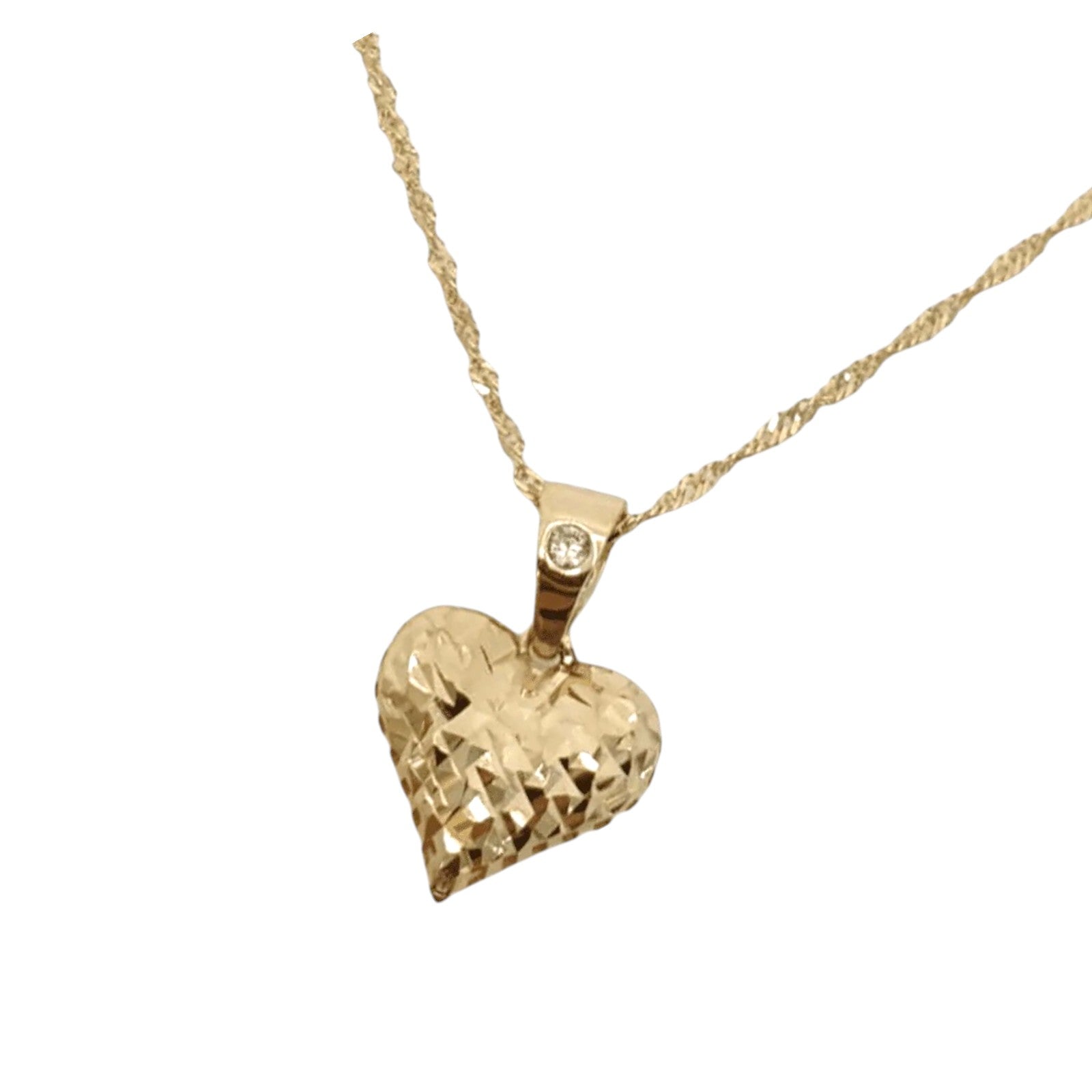שרשרת ותליון לב נפוח | חרוט בחיתוכי לייזר | זהב צהוב 14 קראט | דגם שני