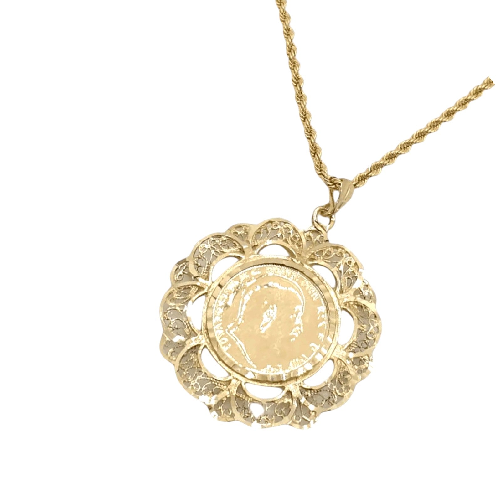 שרשרת ותליון דולר | מסגרת תחרה למטבע | זהב צהוב 14 קראט | דגם ניר