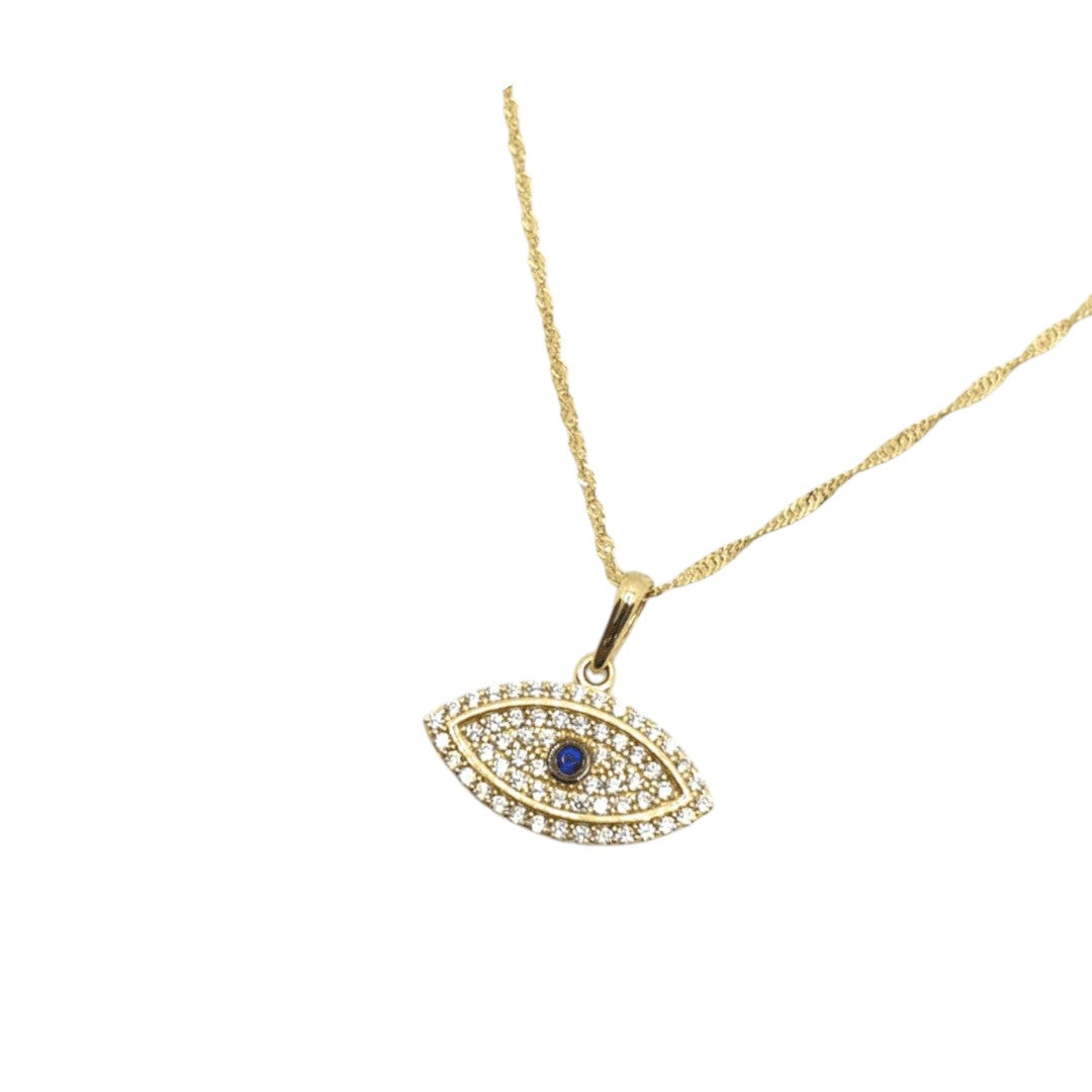 שרשרת ותליון עין | משובץ אבני זרקון | זהב צהוב 14 קראט | דגם נופר