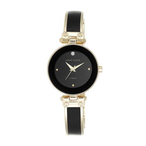 שעון יד לנשים עם לוח שחור ורצועת מתכת AK/1980BKGB Anne Klein
