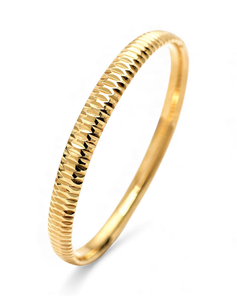 צמיד זהב לילדה | טקסטורת חריטה משוננת | זהב צהוב 14 קראט | דגם נויה