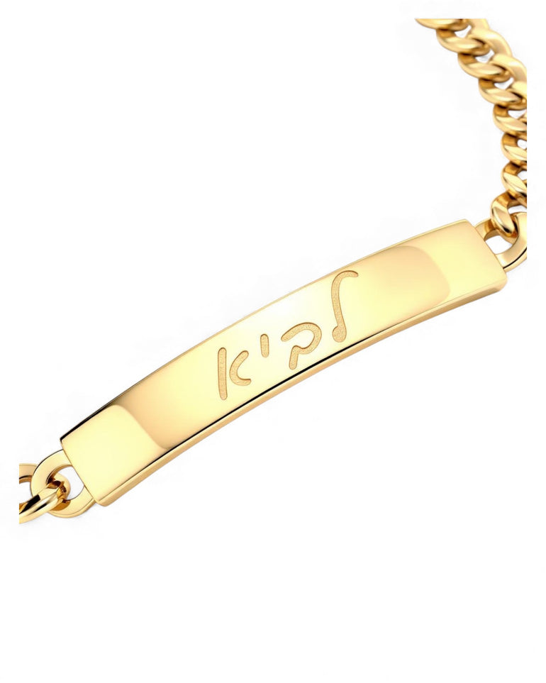 צמיד זהב לילדים | צמיד בר מצווה | צמיד לחריטה | פלטה ישרה וחוליות קלאסיות | זהב צהוב 14 קראט | דגם לביא